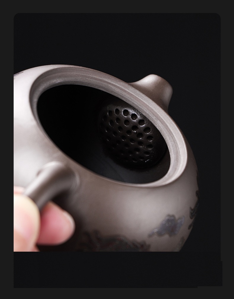✔️ 1 Ấm trà với họa tiết Long Phụng khắc nổi, sắc nét và tinh xảo.